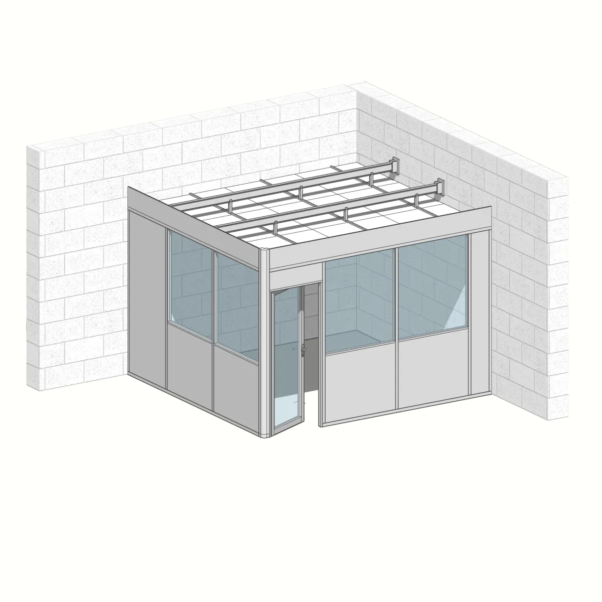 Disponible en version avec une face vitrée ou deux, elle optimise l’utilisation de l’espace tout en offrant une communication visuelle idéale avec l’ensemble de l’atelier. Son plafond, isolable avec de la laine, assure un confort thermique et acoustique optimal, garantissant un cadre de travail agréable.