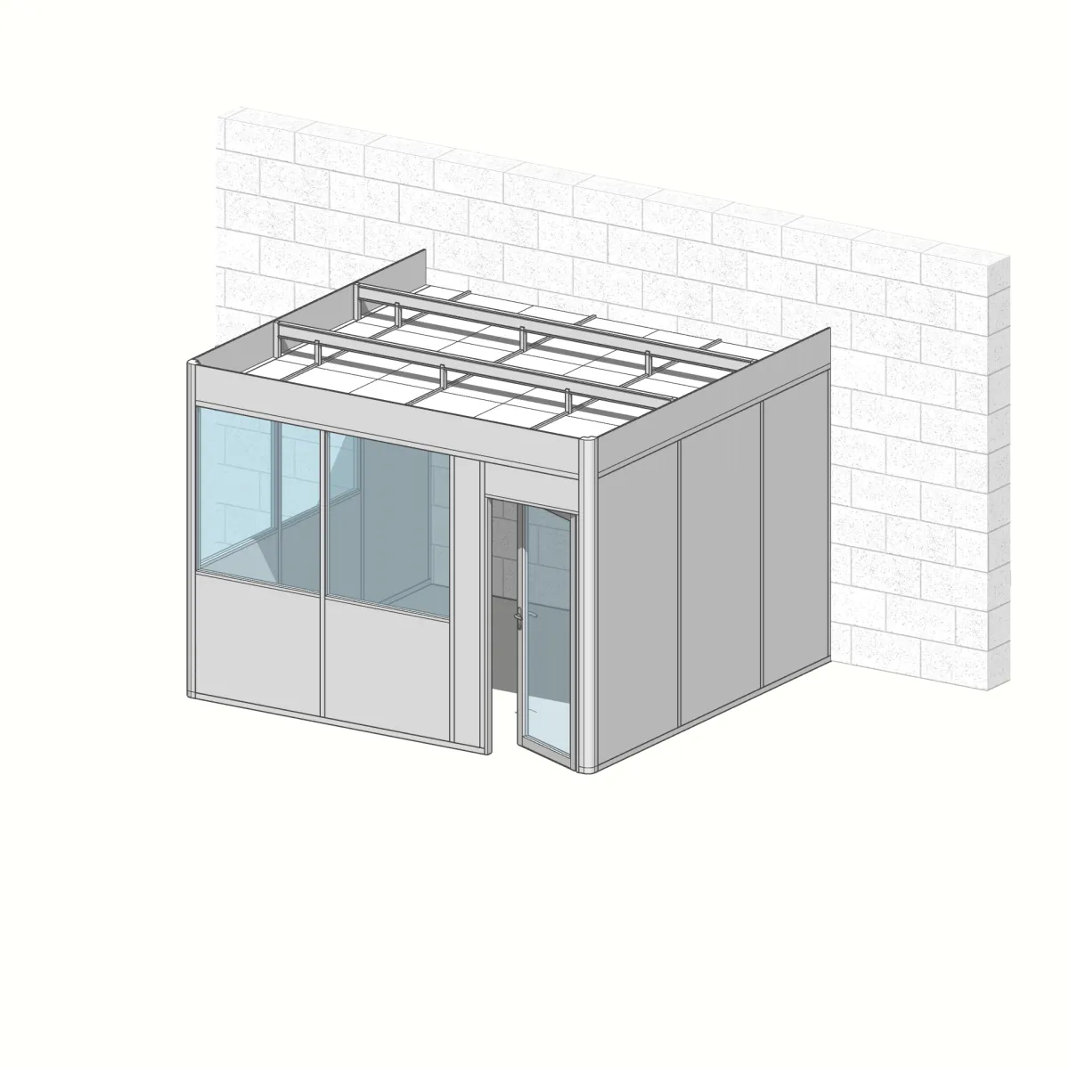 La cabine d'atelier 3 faces propose une configuration adaptable à vos besoins. Vous avez le choix entre des parois vitrées sur 2 ou 3 faces, facilitant ainsi la communication visuelle avec votre environnement de travail. Les cloisons pleines et le plafond peuvent être isolés (option) pour offrir un confort thermique et acoustique supérieur, créant un espace de travail confortable et paisible.